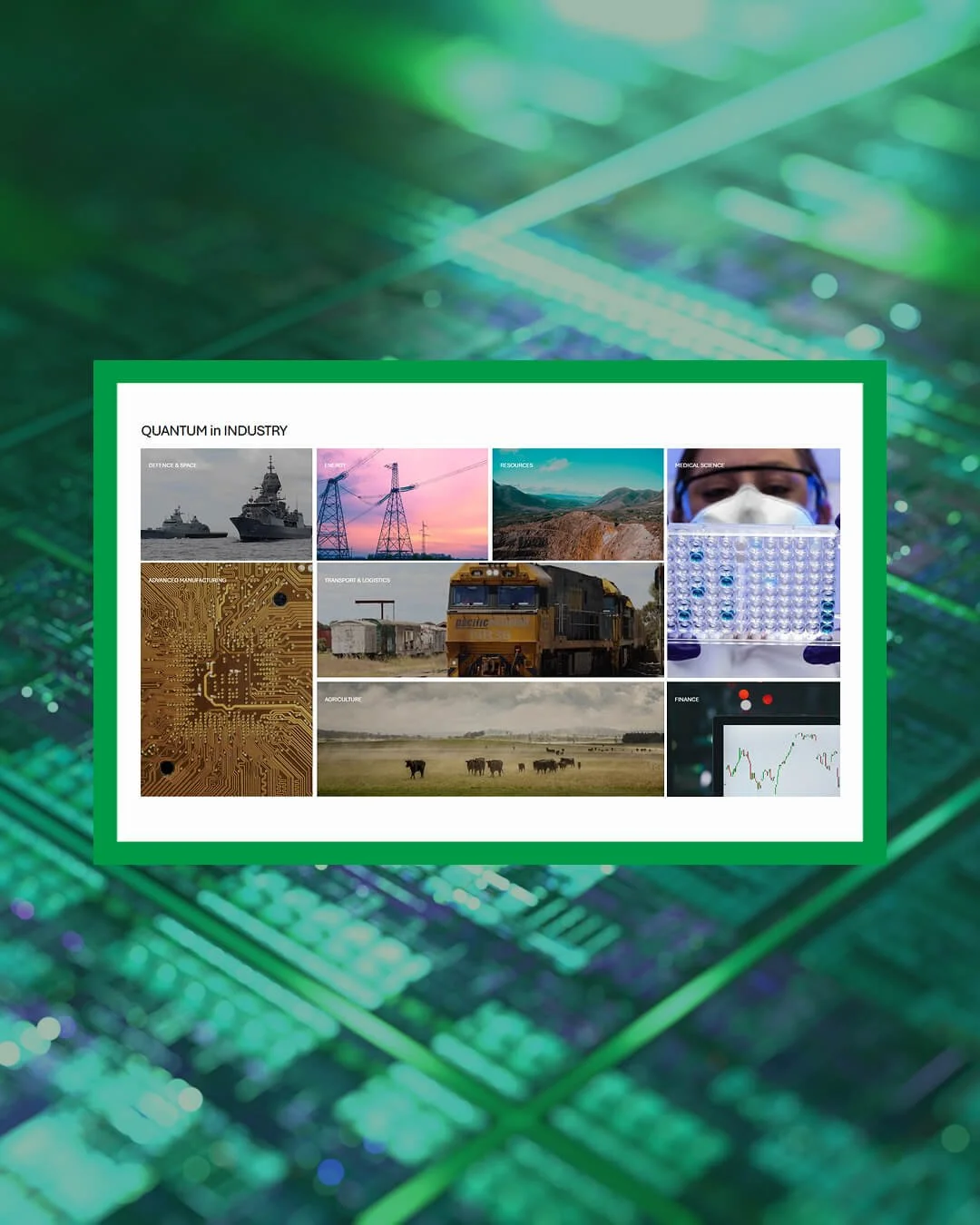 The future isn’t one industry. It’s the collision between many. When we designed the Quantum Australia website, one of the key challenges was communicating this breadth without losing clarity. Quantum technology intersects with defence, health, agriculture, finance, energy and more. The website needed to reflect that ecosystem and easily navigate to information about each sector.